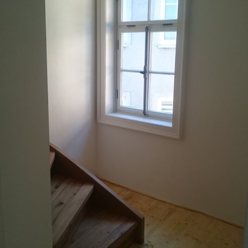 Fenster konnten zum Teil erhalten werden. Die Gläser wurden durch dünne Isogläser ersetzt. Neue Fenster wurden mit schmalen Altbauprofilen ausgebildet.