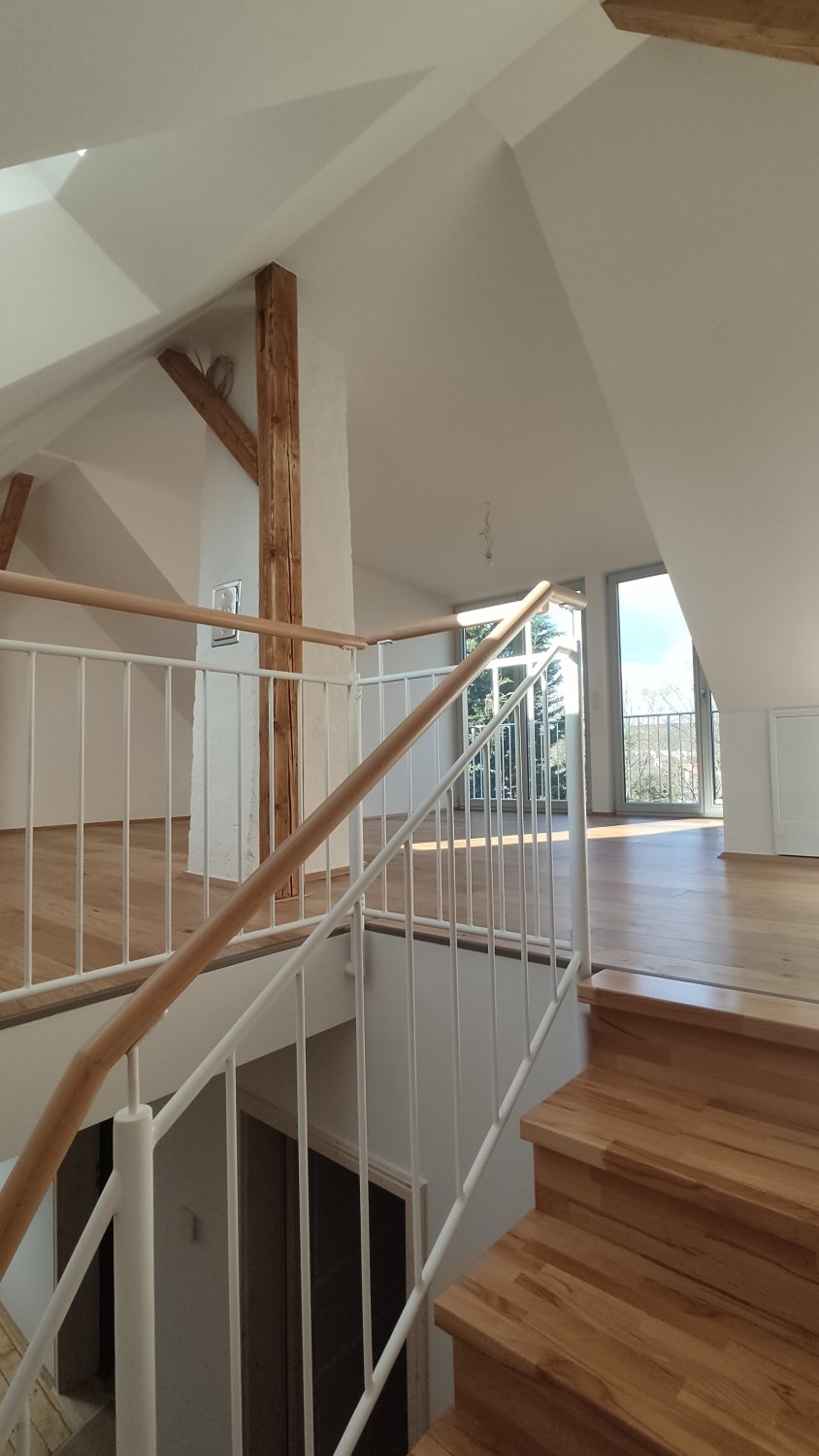 Zusätzlich wurde das Treppenhaus an einen anderen Standort verlegt, um die Grundrisssituation zu verbessern und das neu hinzugekommene, jetzt ausgebaute Dachgeschoss, zu erschließen.