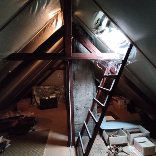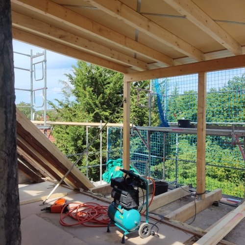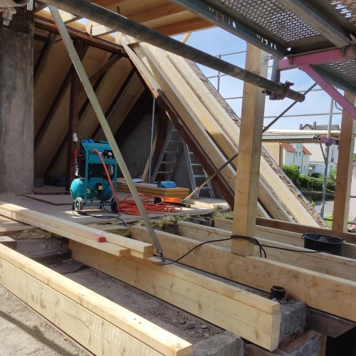 Aufdopplung und Dämmung des Daches mit Holzweichfaser und Zellulose d= 32cm